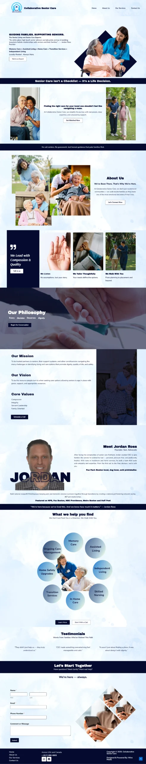 | Brand Background | A US & Canada-based senior advisory service founded by Jordan Ross, committed to helping families navigate assisted living, home care, and memory care with empathy and expertise. (collaborativeseniorcare.com) |